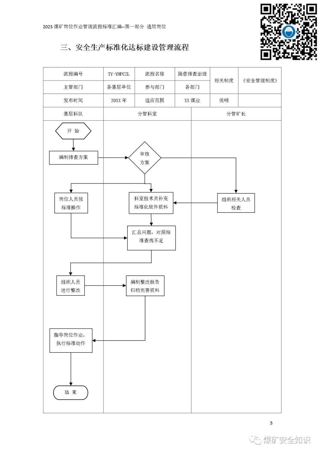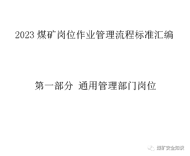 2023煤矿岗位作业管理流程标准汇编第一部分:通用岗位作业管理流程标准第二部分:采煤掘进岗位作业流程标准第三部分:井下机电运输岗位作业流程标准第四部分:通风、抽放岗位作业流程标准第五部分:地面机电运输岗位作业流程标准第六部分:洗煤厂、营销岗位作业管理流程标准第七部分:辅助管理部门岗位作业流程标准目录第一