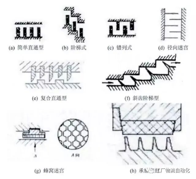 迷宫密封是离心式压缩机级间和轴端最基本的密封形式,根据结构特点的不同,可分为平滑式、曲折式、阶梯式及蜂窝式等四种"型。
